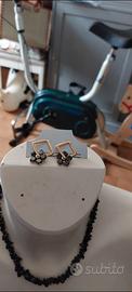 Elegante parure con granato - Pietre di granato grezzo nella collana (fatta verificare) - Combinazione rosso intenso