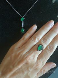 Parure dal design moderno in argento massiccio 925 rodiato nero e bianco con smeraldi doppietta (con cristallo di rocca).