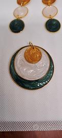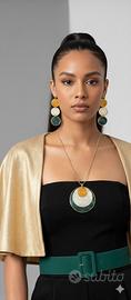Questa parure in resina è un incontro raffinato tra design contemporaneo e ispirazione naturale: il verde profondo, il bianco perlato e l’ambra dorata si fondono in un equilibrio elegante e senza tempo.