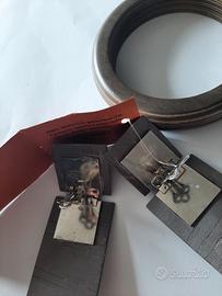 Parure vintage composta da Orecchini missoni in abbinamento con bracciale tutto realizzato a mano, pezzi unici eseguiti su disegno esclusivo, originali in legno, gli orecchini sono con chiusura a clips, tutto nuovo con cartellino, mai utilizzato.