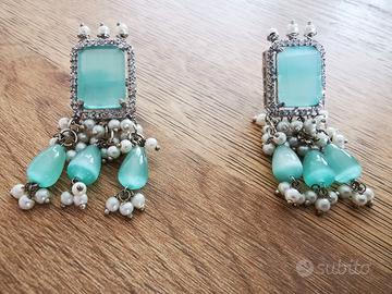 Parure originale Indiana. Set originale Sukkhi con zirconi cubici verdi e perle, placcato rodio.