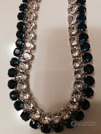 Collier ed orecchini Swarovski originale composto da pietre bianche e blu scure . Parure è nuovo mai usato