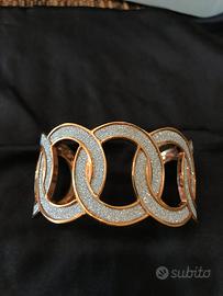 Parure composta da anello, bracciale e orecchini in bronzo, placato oro rosa con finitura Glam Film. Come nuova, indossata pochissime volte. Possibilità di acquistare articoli anche singolarmente.