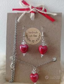 Set Parure donna collana e orecchini con cuori verde scuro💙 LuaCreazioni 💙. Ideato e realizzato da LuaCreazioni. Ho utilizzato cuori di ceramica smaltata e cristalli. Le parti in metallo sono di acciaio. DISPONIBILI IN 3 COLORI: il set con gli orecchini con un solo cuore vengono 25 euro.( vedi foto) Vi ricordo che tutta la mia bigiotteria è realizzata con materiali di qualità .Quelli dorati non si ossidano se non vengono a contatto con profumi e se vengono ben conservati. CONFEZIONE REGALO. Ogni mia creazione è pensata per essere un regalo per gli altri o per sé stessi, ecco perché i prodotti 💙LuaCreazioni 💙sono confezionati con cura