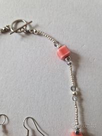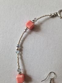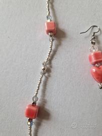 Girocollo e orecchini ideati e realizzati da LuaCreazioni. Pezzi unici. Perline di vetro giapponesi argentate, cubi di acciaio, cubi rosa di ceramica smaltata e cristalli. La collana è lunga 48 cm. Realizzata a mano. Nessuna produzione automatizzata. Le perle sono infilate pazientemente a mano, una alla volta, con filo resistente. CURA DELLA COLLANA Per mantenere l'aspetto e la durata della collana evita il contatto con l'acqua, saponi, profumi e prodotti chimici. Toglila prima di fare sport o attività manuali prolungate. Conservare in luogo asciutto quando non indossata. CONFEZIONE REGALO Ogni mia creazione è pensata per essere un regalo per gli altri o per sé stessi, ecco perché i prodotti 💙LuaCreazioni 💙sono confezionati con cura