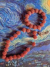 Parure collana e bracciale Sodini bijoux simile a lamponi composti da piccole sfere rosa scuro ( il bracciale, più usato leggermente più chiaro) alternato a sfere dorate. La collana è su catena, il bracciale con robusto elastico. Molto raffinato