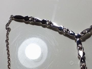 parure Swarovski modello Emma placcata rodio con cristalli bianchi,composta da ; orecchini a lobo a forma di cuore con pavé di cristalli come nuovi e collier lunghezza regolabile 36\44 cm ,la parte semirigida e' larga 9 cm , indossata un paio di volte ma qualche cristallo ha bisogno di lucidatura ,visibile in ultima foto con ingrandimento,a occhio nudo non si vede . completo di scatola originale e certificato