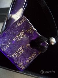 vendo parure in vetro di Murano composta da pendente con cordino in velluto nero e orecchini abbinati. scatola originale e certificato di garanzia incluso.