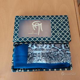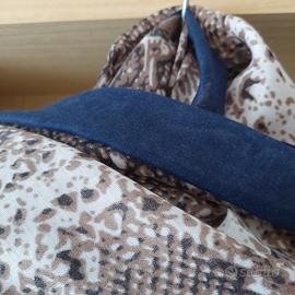 pashmina maculata con profilo blu 81x185, nuova con cartellino, viscosa - Gai Mattiolo