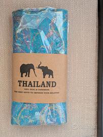 Pashmina/sciarpa thailandese 100% seta naturale e cachemire, motivo floreale turchese con elefanti. Nuova, mai indossata (imballo originale Thailand) Dimensioni: 180x70cm circa, leggera e morbida Perfetta per le serate estive ventilate o per la mezza stagione . Lavabile a mano, non stinge Regalo ideale o accessorio elegante, si trova in vendita su Amazon a 34€!