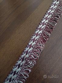 Materiale e Aspetto:Il nastro ha una tessitura fitta e strutturata, che lo rende resistente e ideale per applicazioni su arredo. I colori profondi e la lucentezza dei filati (visibile nelle foto) conferiscono un aspetto di alta qualità.