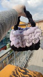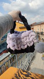 borsa in filo di marshmallow in velluto di due colore nero e lilla chiaro ...