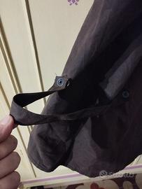 Splendido impermeabile in stile mandriano , ottima resistenza all acqua , fornito di ulteriore mantella coprispalle e laccio da bloccare alla gamba.....in condizioni perfette . Tessuto in cotone cerato che al tatto sembra pelle scamosciata.