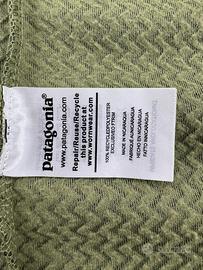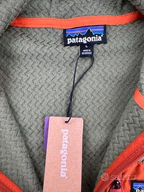 Vendo pile/midlayer Patagonia con cappuccio e zip intera, colore verde con dettagli arancioni.