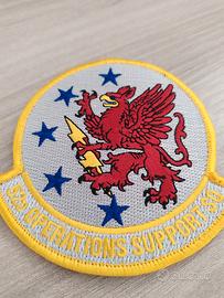 Patch militare originale americano con ricamo dettagliato, colori vivaci, ideale per collezionisti o per zaini, giacche, biker, abbigliamento militare. Raffigura un grifone rosso con fulmine su sfondo bianco e stelle blu, simbolo distintivo di questa unità operativa.