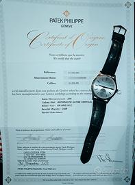 Patek Philippe Calatrava oro bianco 39mm. Ultimo modello Ref. 6119 G il più richiesto. Cassa sottile 8mm. Quadrante grigio antracite. Lunetta lavorazione guilloché. doppio zaffiro con movimento a vista dal fondello. Calibro manuale di manifattura 30-255 PS con 65 ore di riserva di carica. Cinturino in pelle cocco nero Patek. Condizioni pari al nuovo. Anno novembre 2022 Italiano. Corredo completo di tutto full set. Faccio notare il listino di 34.200 euro quindi lo stò vendendo ad un prezzo molto competitivo. Garantisco con contratto di vendita l'originalità e la lecita provenienza di questo segnatempo. NO TRUFFE E NO PERDITEMPO. Incontro solo in gioielleria su appuntamento e previo invio documenti. NON TRATTABILE PERCHÈ I PREZZI SONO AI MINIMI DI MERCATO. Per le permute solo full set.