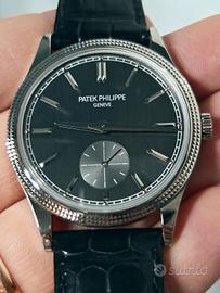 Patek Philippe Calatrava oro bianco 39mm. Ultimo modello Ref. 6119 G il più richiesto. Cassa sottile 8mm. Quadrante grigio antracite. Lunetta lavorazione guilloché. doppio zaffiro con movimento a vista dal fondello. Calibro manuale di manifattura 30-255 PS con 65 ore di riserva di carica. Cinturino in pelle cocco nero Patek. Condizioni pari al nuovo. Anno novembre 2022 Italiano. Corredo completo di tutto full set. Faccio notare il listino di 34.200 euro quindi lo stò vendendo ad un prezzo molto competitivo. Garantisco con contratto di vendita l'originalità e la lecita provenienza di questo segnatempo. NO TRUFFE E NO PERDITEMPO. Incontro solo in gioielleria su appuntamento e previo invio documenti. NON TRATTABILE PERCHÈ I PREZZI SONO AI MINIMI DI MERCATO. Per le permute solo full set.
