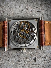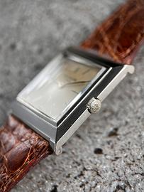 Orologio vintage Patek Philippe. Modello Gondolo. Rif. 3404. Cassa di forma quadrata. Oro bianco 18 kt. Cassa di dimensioni 28x28 mm. Quadrante originale argentato con una leggera patina color crema. Carica manuale calibro Patek 23-300. Buone condizioni generali