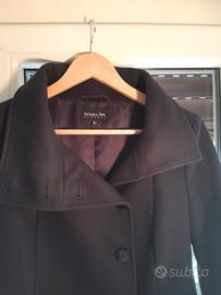 Cappotto Patrizia Pepe realizzato in lana e nylon color viola scuro. Peculiarità sono la fibbia a vita, bottoni frontali loggati e collo alto che può essere indossato rialzato o ripiegato.