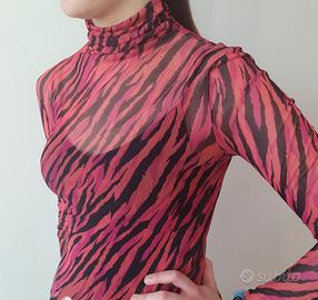 Utilizzata alcune volte, presenta alcuni fili di elastane. Molto pratica da utilizzare da sola, oppure sotto ad un blazer. Collo unico senza cuciture.