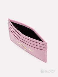 Patrizia Pepe porta carte in pelle di vitello martellata con dettaglio logo lettering, con spazi per tessere e documenti sia davanti che sul retro, più spazio centrale per monete, come da foto.