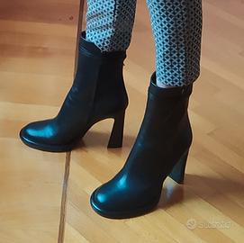 Non presenta alcun difetto. Il tacco è alto 9,5 cm, è fatto molto bene, dà un'ottima stabilità e rende lo stivaletto veramente molto comodo.