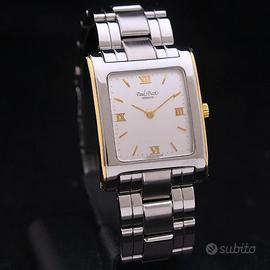 Paul Picot Geneve ref 5028 cassa in acciaio e oro di 29x37 mm escluso corona vetro zaffiro quadrante argento corona P.P in oro bracciale P.P in acciaio con chiusura a deployante movimento meccanico a carica manuale calibro Eta 2512 perfettamente funzionante revisionato originale Paul Picot (non trattiamo falsi) in eccellenti condizioni !! rilasciamo fattura di vendita nella quale certifichiamo l'orologio spediamo gratis in tutto il mondo