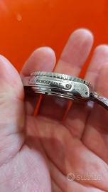 Massa oscillante e bilanciere in oro 21 K, cinturino in pelle di coccodrillo, 10 Atm. Su 3 lati è stato personalizzato incidendo 2 date ed una sigla. (Data di assunzione in azienda e data di pensionamento)
