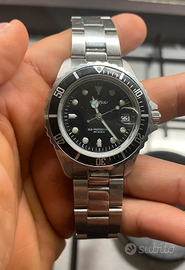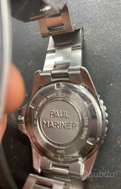 Paul Mariner 1 Quarzo Nero 38mm Ghiera Nera. Orologio professionale da sub resistente all'acqua fino a 200 metri. Realizzato con cassa in acciaio, movimento al quarzo, quadrante nero con datario an ore 3 e bracciale in acciaio con chiusura deployante. Buone condizioni, segni di usura presenti e quindi posso trattare sul prezzo. Preferenza per consegna manuale in zona Verona e provincia. Ref. 4001BK-BK