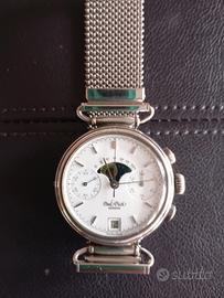 cronografo con fase lunare e datario, movimento anni '40 a carica manuale. modello raro, con scatola originale.