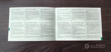 Mediterranee Anniversary Manuale e Certificato di Garanzia Internazionale in bianco