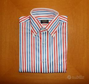 Paul & Shark camicia 39 Manica lunga, colore bianco con righe rosso e celeste, colori brillanti, tessuto pregiato cotone 100% logo ricamato su taschino , misura 39, vestibilità molto ampia, ascella - ascella 59 cm., naturalmente originale 100%. La camicia è NUOVA SENZA ETICHETTE, non è stata mai stata indossata, è PERFETTA!