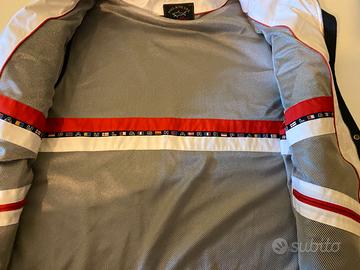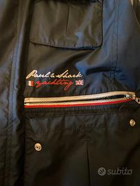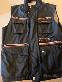 Paul & Shark Yachting gilet multitasche, della linea tecnica "Tactical" o "Sailing" dei primi anni 2000, presenta un'organizzazione complessa con tasche a soffietto e chiusure lampo con bordi a contrasto bianchi e rossi e un'estetica molto diffusa nelle collezioni nautiche del brand di quel decennio. Il ricamo laterale "Paul & Shark Yachting" con le bandiere e i colori nautici è tipico delle produzioni primi anni 2000 prodotte in Italia. Chiusura frontale con zip coperta da una patta con bottoni a pressione. Realizzato in materiale sintetico resistente all'acqua e al vento. Disponibili altre foto a richiesta.