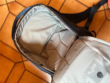 Zaino fotografico Peak Design capienza 15 litri, con sistema separatori con velcro, apertura zip, impermeabile, tasche interne ed esterne. Usato poco, in ottime condizioni. Colore blu. Vendo per inutilizzo