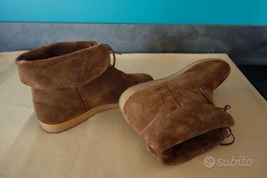 NB: in alcune foto le pedule sembrano chiazzate di colore più chiaro. In realtà sono di colore marrone uniforme. E’ soltanto la luce che colpendo la pelle scamosciata dà questo effetto cangiante (proprio come lo fa il velluto).