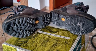 Scarponi trekking come nuovi della marca Scarpa. Modello Kailash Trek GTX, colore Shark-Gray- Lake Blue. Taglia EU 37, UK 4, USm 5, USw 6.