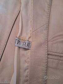 Completo donna giacca e pantalone in vera pelle. . Colore avorio. Taglia 46. Marca Anna Pucci