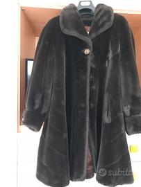 Pelliccia sintetica tipo castoro marrone, molto morbida e calda. Modello svasato dietro. La fodera interna è un po' consumata in alcuni punti. Ad esempio, nelle tasche.