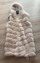 Vendo per inutilizzo pelliccetta con cappucio e senza maniche beige, perfetta, nessun segno di usura, tiene molto caldo, è una taglia unica, ma veste benissimo una taglia S o M.