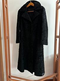 Pelliccia agnellino persiano di colore nero modello vintage, di taglio sartoriale, taglia 48/50.