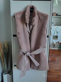 Pelliccia smanicata in poliestere AngySix taglia S rosa mai indossata