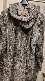 astracan o persiano pelliccia con cappuccio taglia L taglio anno 200 grigio fodera disegno cachemire tasche laterali interne tenuta bene non difetti