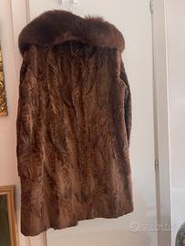 Giaccone svasato di astracan con collo ampio di volpe colore marrone Vestibilità ampia Interno foderata Come nuova