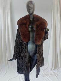 pelliccia astrakan con grande collo in volpe Brown, astrakan di un colore testa di moro scurissimo. veste una taglia grande da 48-50-52