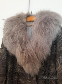 Pelliccia cappotto astrakan grigia con cappello e collo volpe argentata, misura 46/50, ritiro a Roma a carico dell'acquirente