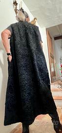 Particolare pelliccia in Astrakan nero, duble face smanicata , interno animalier impermeabile . Taglia 46/48 .