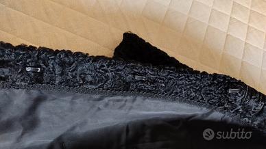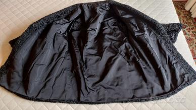 pelliccia giaccone breitschwanz nera. Fodera interna nuova. 3 ganci per chiusura interni. Lunghezza 80cm, larghezza spalle 47cm, lunghezza maniche 53 cm