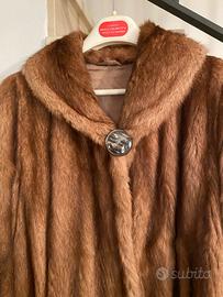 Pelliccia visone con 2 tasche e spacchi laterali arrotondati nella parte posteriore e ad angolo nella parte anteriore.