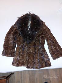 Pelliccia di pancine di visone con collo in volpe argentata in ottime condizioni, taglia 46.