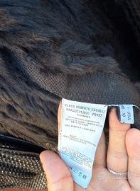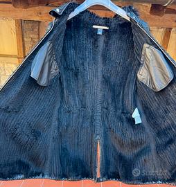 Bellissima giacca di pelliccia in Lapin Rex Cincilla nera e pelle di agnello tagliati al laser intrecciati con le maniche in Mongolia bordato di vero pelo di Murmasky (come Volpe) con cappuccio di Roberto Cavalli made in Italy.